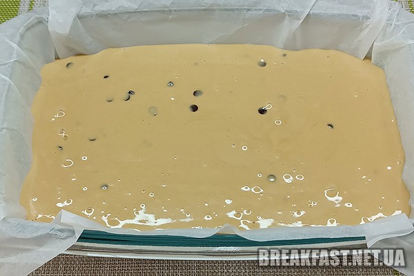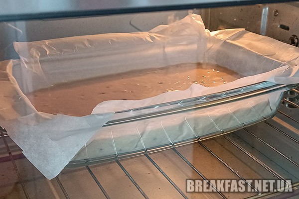 Форму для випікання (у мене скляна розміром 28х17 см) застеляємо пергаментним папером.