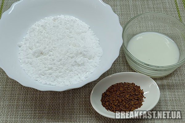 Тим часом приготуємо кавову глазур, для чого нам будуть потрібні ось такі продукти.