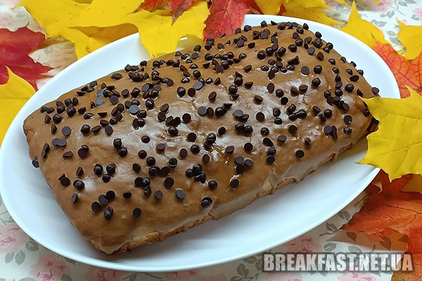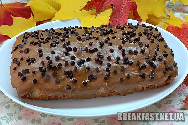 Покриваємо кавовою глазур'ю кекс та прикрашаємо шоколадною крихтою.