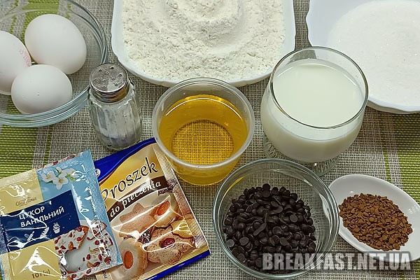 Ось такі продукти нам будуть потрібні для приготування тіста для Кавового кексу.