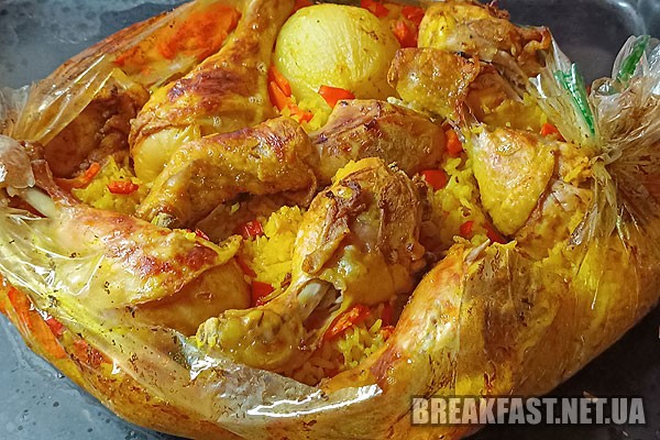 Курячі гомілки з рисом у рукаві вийшли дуже смачними.