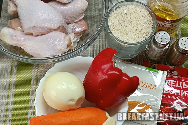 Для приготування Курячих гомілок з рисом у рукаві нам будуть потрібні такі продукти: