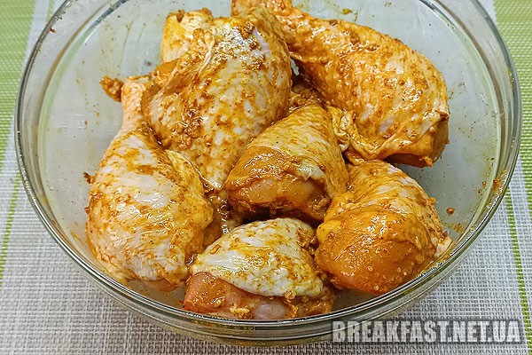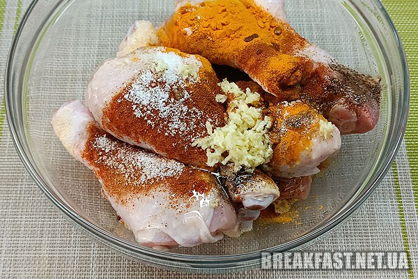 В першу чергу нам необхідно замаринувати курячі гомілки.