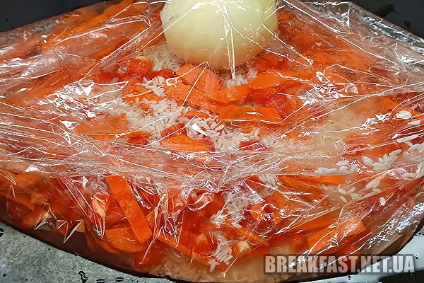 Ретельно все перемішуємо, накриваємо харчовою плівкою та залишаємо маринуватися мінімум на 30 хвилин.