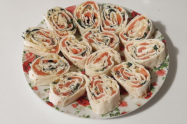Села описывать данное блюдо, а у самой слюнки потекли. Несмотря на то, что это блюдо готовится не сложно, можно сказать очень быстро и легко, получается оно настолько вкусным, что съедается сразу. Иногда приходится готовить сразу с двух порций. В моей семье вообще любят армянский лаваш, к сожалению, сама я его не готовлю, а покупаю в магазине уже готовый, кстати, очень вкусный. Пробовала настоящий армянский лаваш, тот, что продается в магазине мало, чем от него отличается. Недавно была в гостях, там угощали лавашем с бужениной, сыром и зеленью, но он был разогретым на сковороде до золотистой корочки. Очень вкусно и необычно! Обязательно попробую приготовить, а пока готовим рулетики с семгой.