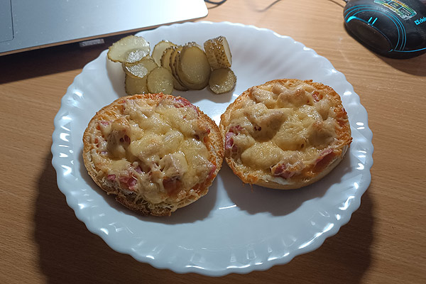 Ось такі неймовірно апетитні та смачні вийшли гарячі канапки, що чимось нагадують піцу.