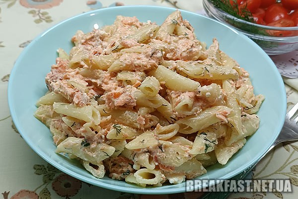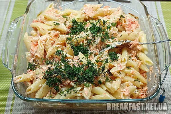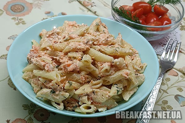 Наша Паста з червоною рибою, сиром Фета та помідорами готова.