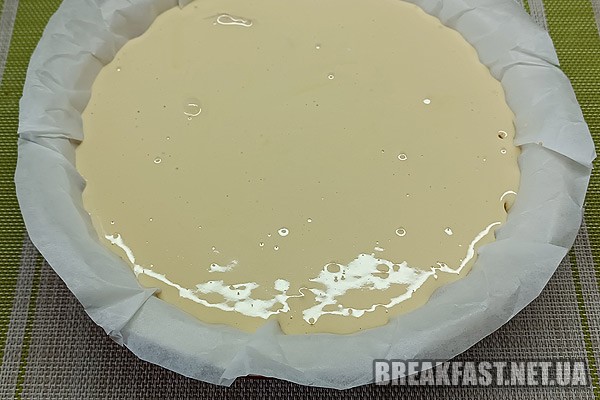 Зверху заливаємо тістом, розрівнюємо поверхню.