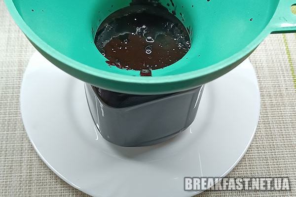 Готове Варення з чорноплідної горобини з лимоном та апельсином розливаємо по банках та закриваємо кришками.