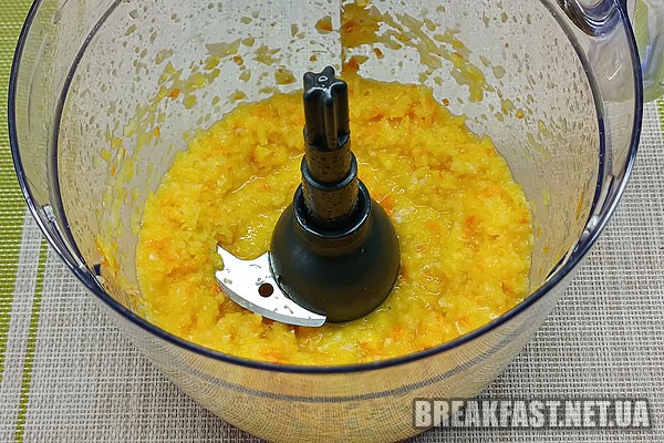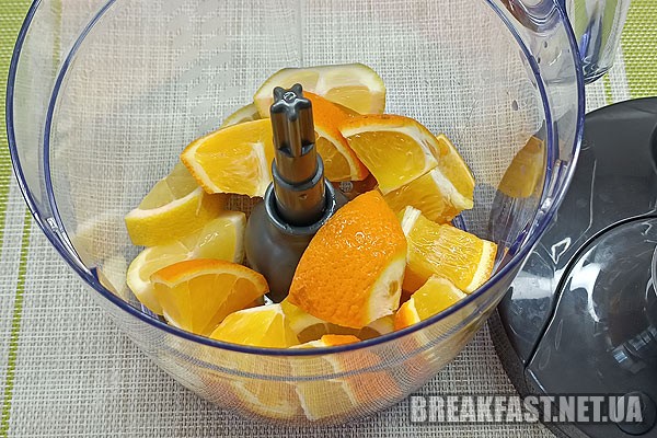 Подрібнюємо шматочки цитрусових блендером або пропускаємо через м'ясорубку.
