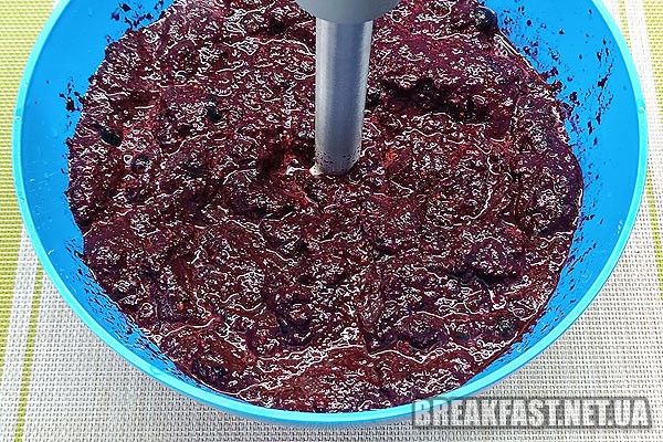 Ягоди чорноплідної горобини я подрібнила занурювальним блендером (можна перемолоти).