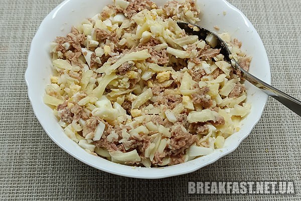 Як я вже зазначала вище, для цього рецепту краще обирати консервований тунець шматочками.