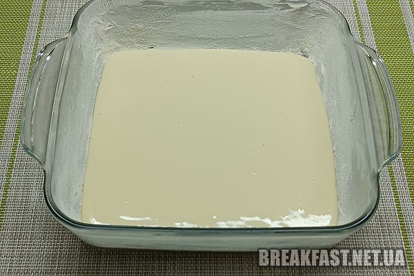 Форму для випікання (у мене скляна 20х20 см) змащуємо маслом та присипаємо борошном.